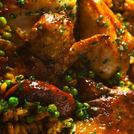 Similar to the Arroz Campesino this rice dish offers comforting Latin flavors using sweet plantains, corn, pork and a special addition of Spanish chorizo and ham. Served with an included House Salad with Chef Gio Dressing and premium Dinner Rolls